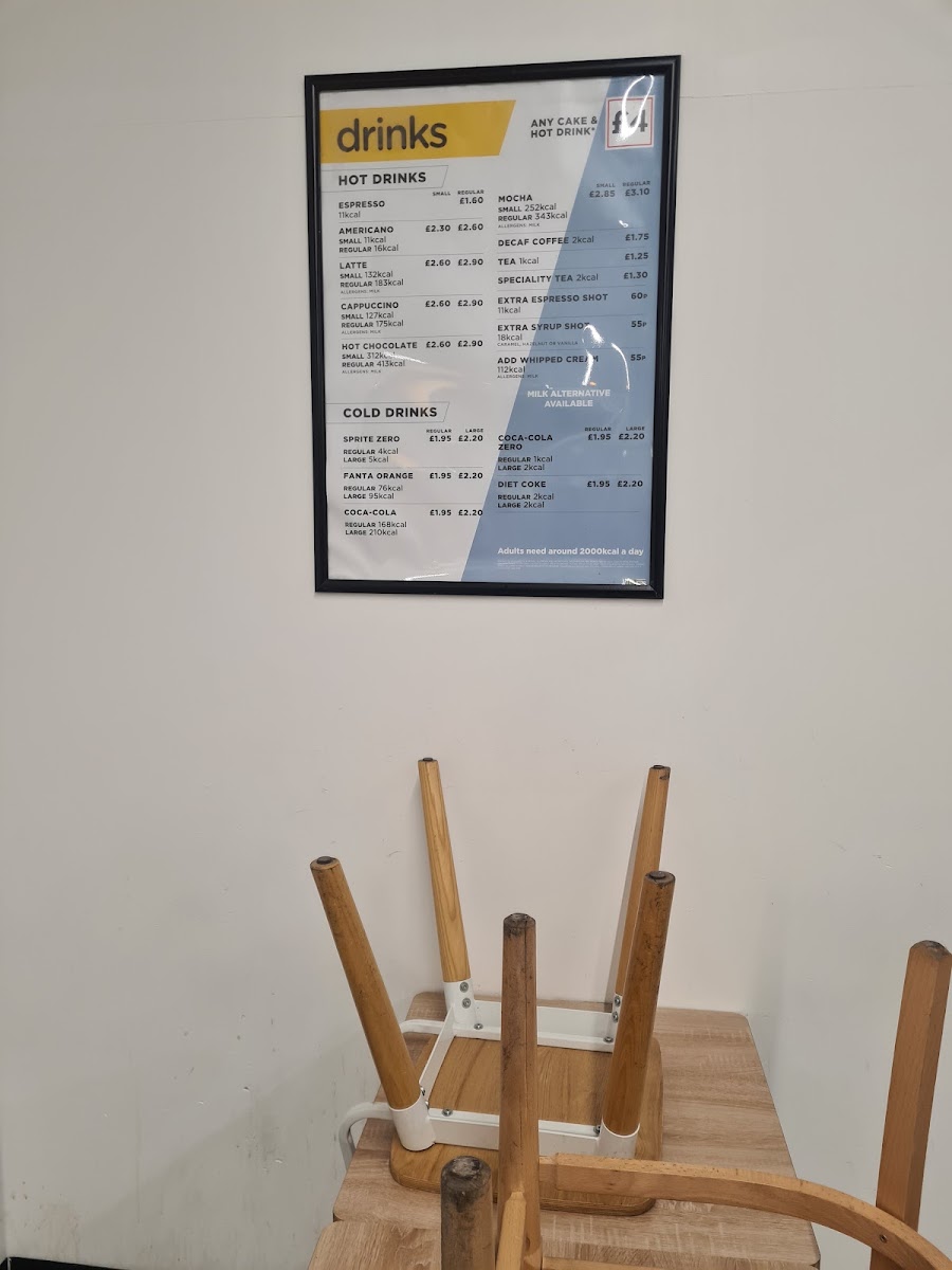 To wash it all down, ASDA Cafe provides a refreshing selection of Cold Drinks, including the classic Coca-Cola and Fanta Orange, priced at an attractive £2.20. Perfect companions to your meal or sweet treat!